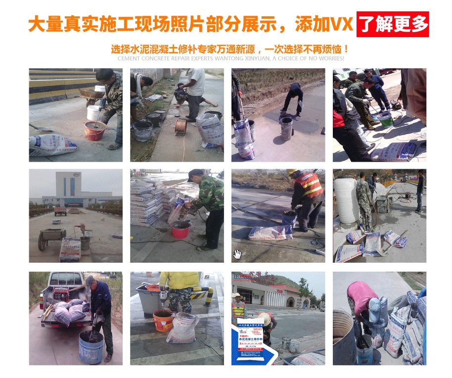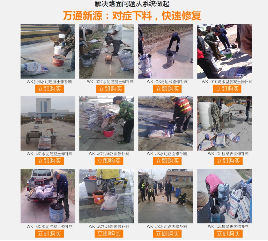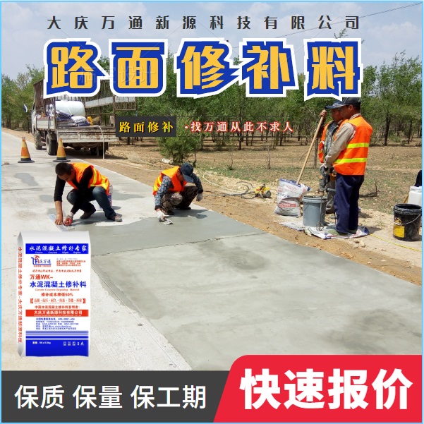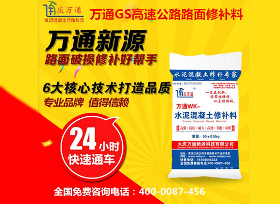 大慶萬通新源科技有限公司獨有的混凝土路面高強速補料,是水泥混凝土路面病害修復的好材料。疲勞、凍融循環(huán)、彎曲壓力、滲水和基層破壞等原因都會引起水泥路面的破損,從而帶來高昂的維護費用。與以往的剛性修補方法不同,混凝土水泥路面維修速補膠提供了一種獨特的柔性修補產品和技術,高柔性、高抗拉性,可跨伸縮縫施工和高抗壓性使得混凝土快補產品為水泥混凝土路面提供了******性的修補。傳統(tǒng)的剛性修補方案,如環(huán)氧砂漿和快干水泥產品,由于其自身的粘結失效,抗疲勞性低以及與原路面不同的伸縮系數(shù),修補面會在短時間內失效或產生新的裂縫,需要反復修補,有效期短且費用高昂。大慶萬通新源科技有限公司的混凝土水泥路面維修速補膠可以隨原路面一起伸縮,移動,從而避免了粘結失效和產生新裂縫。萬通快補產品優(yōu)異的粘結性、柔韌性和高防滑性,特別適用于水泥路面的淺層粘合修補,多邊角混凝土板層修補,跨伸縮縫修補以及路面沉陷修補。萬通混凝土病害修補料針對混凝土起皮起沙、斷板裂縫、蜂窩麻面、坑槽露石子、漏筋掉皮、橋梁的掉皮漏筋快速通車使用時間長。應用萬通快補產品,施工后一天就可以恢復交通。大慶萬通新源科技有限公司的萬通水泥路面維修速補膠適用于高速公路、機場路面、農村村村通路面、廠坪、學校操場、市區(qū)公路、小區(qū)路面、橋梁、水泥路面的修補。使用萬通特快補材料修補路面可以一勞永逸! 水泥地面起砂怎么辦,混凝土修補劑混凝土地面起砂,混凝土地面修補,地面起砂怎么辦,